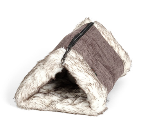 Cama conversível 2 em 1 (nicho/tapete) produzida em pêlo suave e longo. Enchimento com tecnologia reflectora com camada de alumínio, para conferir aquecimento e máximo conforto.