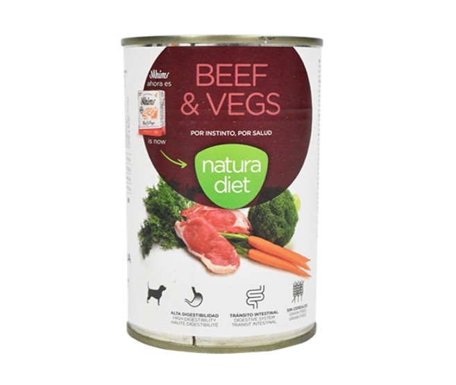 Comida húmida - NATURA DIET DOG BEEF & VEGS 400 GR - Grain Free - CX 12 UN