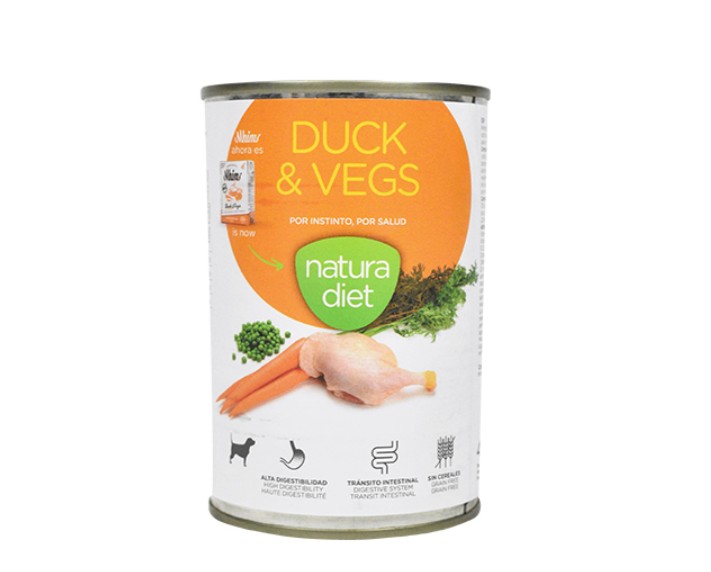 Comida Húmida NATURA DIET DOG DUCK & VEGS 400 GR - Grain Free - CX 12 UN.