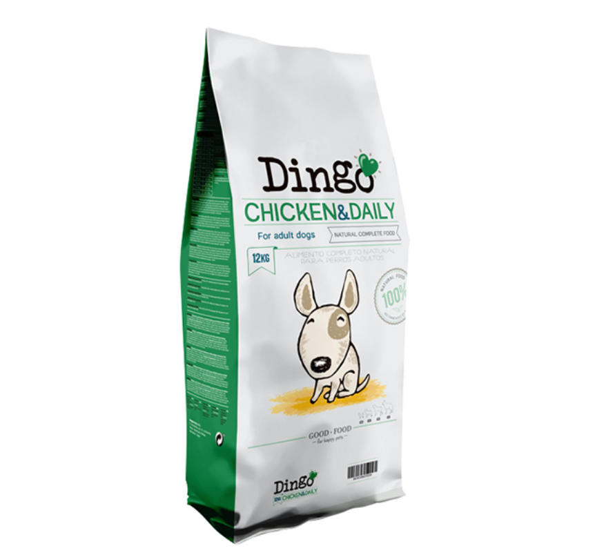 Alimento completo, natural e equilibrado para cachorros adultos com uma atividade diária normal. Dingo Chicken & Daily ajuda a manter as articulações saudáveis e reforça o sistema imunitário do nosso companheiro, garantindo uma ótima condição física e o atraso do seu envelhecimento. Composição: Proteína de frango desidratada (25%), proteína de porco desidratada, milho, arroz, farinha de glúten de milho, gordura de frango, polpa de beterraba e polpa de maçã desidratadas (fonte natural de fibra), óleo de salmão e óleo de linho (fontes de ómega 3 e ómega 6), aveia (rica em vitaminas do grupo B), legumes desidratados (fonte natural de vitaminas e minerais), cloreto de potássio, mistura de alecrim e citrinos desidratados (elevado poder conservante), mistura de óleos vegetais ricos em alfa-tocoferóis (elevado poder antioxidante).