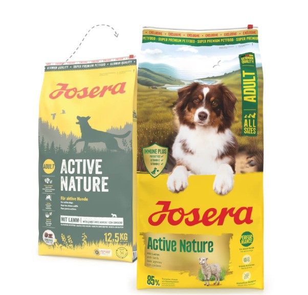 Josera Active Nature é um alimento seco, para cães ativos, fornecendo toda a energia de que necessitam. Com uma porção extra de carne de aves e cordeiro premium.