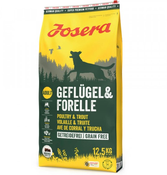 Josera de Aves e Truta é um alimento seco formulado para cães muito ativos.