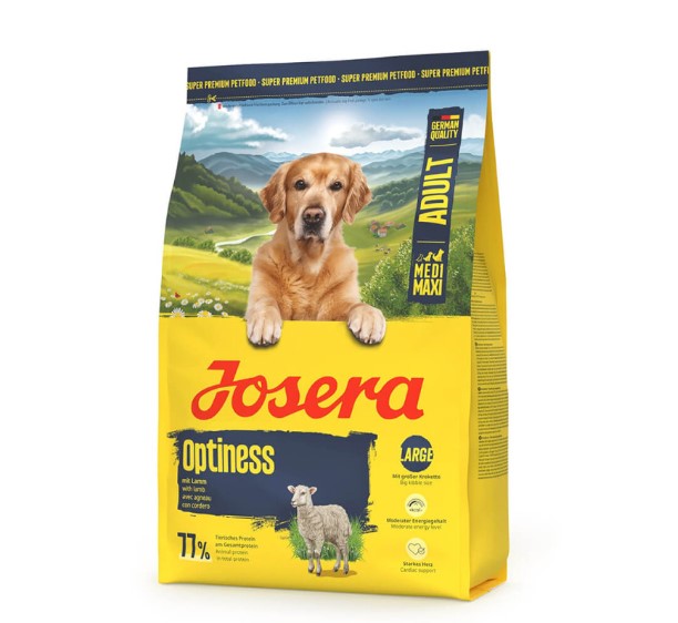 Josera Optiness é um alimento seco especialmente formulado para cães adultos de porte médio e grande.