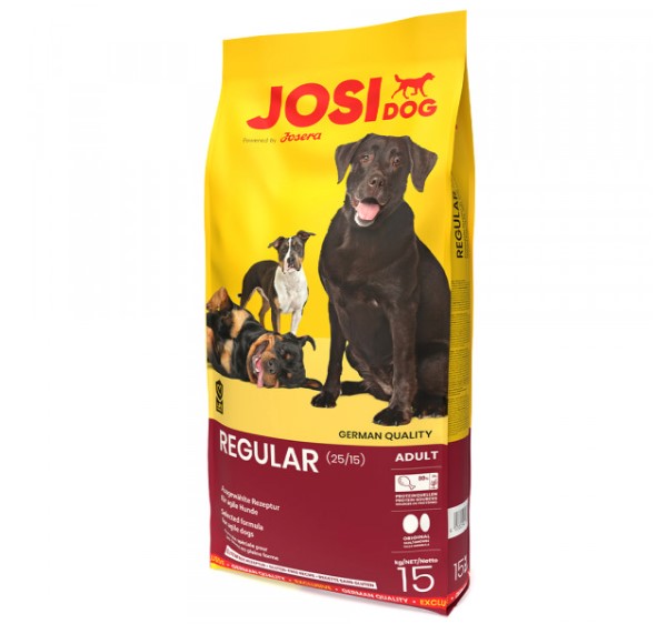 JosiDog Regular é um alimento completo para cães adultos, que precisem de uma dieta com maior teor de energia. Esta ração não tem adição de corantes, aromatizantes ou conservantes artificiais. Além de saborosa e nutritiva, a produção desta ração é amiga do ambiente.