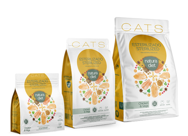 Alimento completo, natural, nutritivo e saudável, biologicamente adaptado para ser desfrutado por gatos adultos esterilizados ou que precisam de controlar o peso.