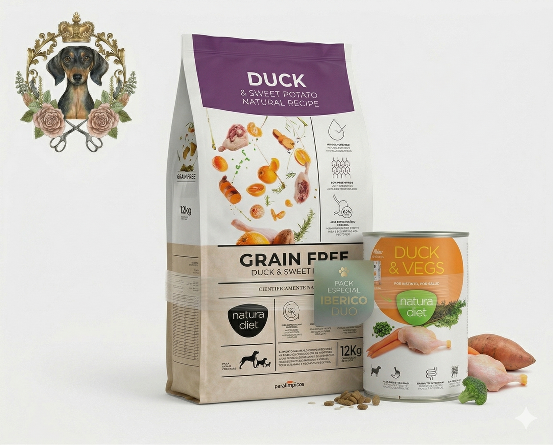 Si tu perro tiene sensibilidades alimentarias o piel irritada, este es el pack que transformará su bienestar. Hemos combinado el alimento seco y la comida húmeda de Pato, una proteína noble y naturalmente menos alergénica, ideal para dietas de exclusión.