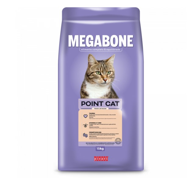 Picart Megabone Point Cat é um alimento completo e equilibrado para gatos adultos de todas as raças, com atividade física diária normal. Os ingredientes garantem elevada palatabilidade, fornecendo nutrientes, vitaminas e minerais de que os gatos precisam para um bem-estar geral.