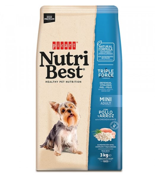 Nutribest High Premium Mini Adulto é um alimento seco completo formulado especialmente para cães adultos (mais de 9 meses) de porte pequeno, ou seja, aqueles que atingem um peso aproximado de 10kg em idade adulta.