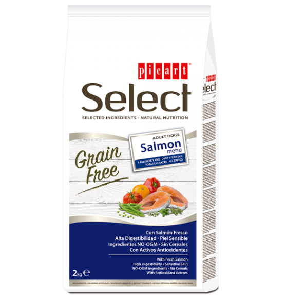 Se suspeita que o patudo possa ter alguma intolerância ou sensibilidade digestiva, ou até um problema de pele relacionado com a alimentação, ofereça-lhe Select Grain Free Salmon Menu. Um alimento sem cereais, ideal para cães com digestão difícil, sensibilidade de pele e intolerância ao glúten.