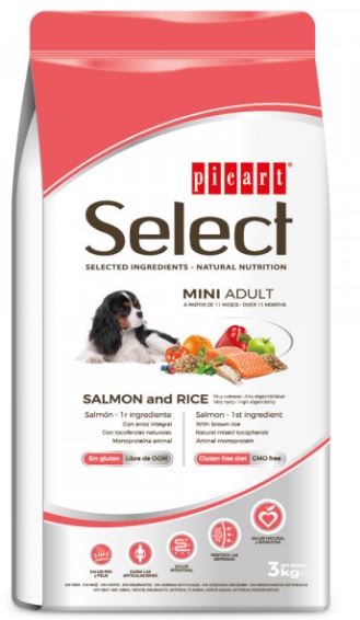 Picart Select Mini Sensitive Adulto Salmão e Arroz - 3 kg - opção de pack econômico