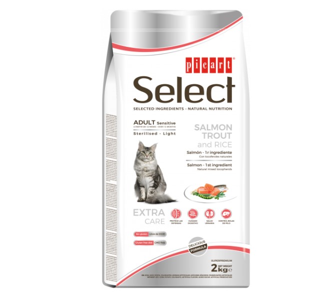 Picart Select Sensitive Sterilised/Light Gato adulto - Salmão, truta e arroz - 8 kg