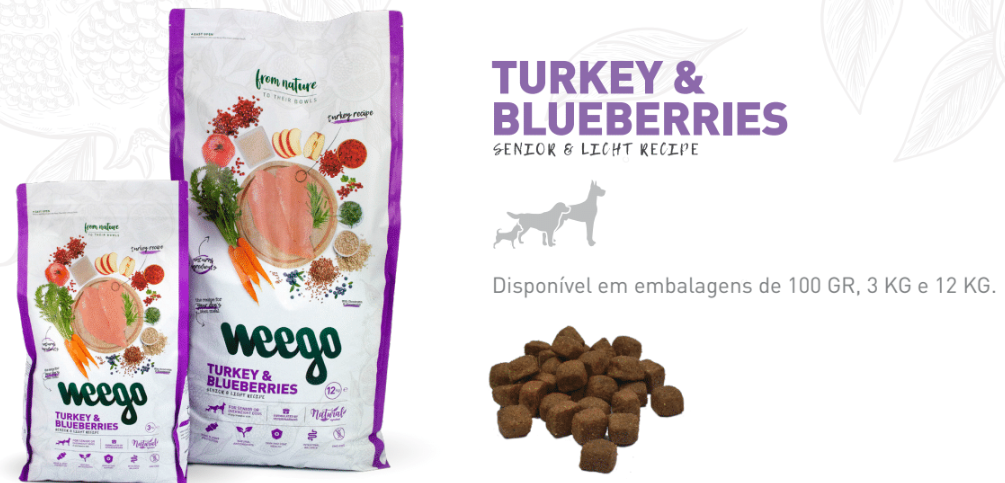 Weego Original - cães - Peru e Mirtilos - sêniores e excesso de peso -12 kg