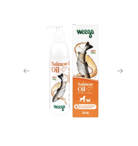 Weego® Salmon Oil é um suplemento alimentar natural para cães e gatos, rico em ácidos gordos e insaturados de ómega-3.