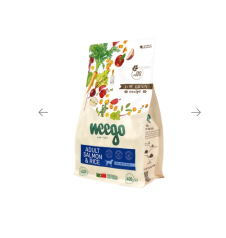 Weego® Adult Salmon & Rice é um alimento completo para cães adultos de todos os tamanhos, seco, sem milho e à base de salmão, que proporciona uma dieta natural e equilibrada.